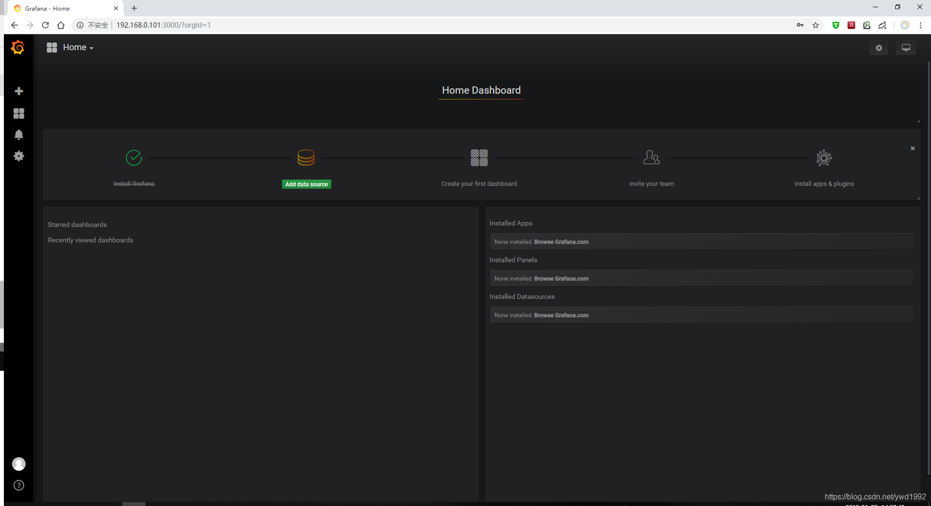 浏览器访问IP:3000端口,即可打开grafana页面,默认用户名密码都是admin,初次登录会要求修改默认的登录密码